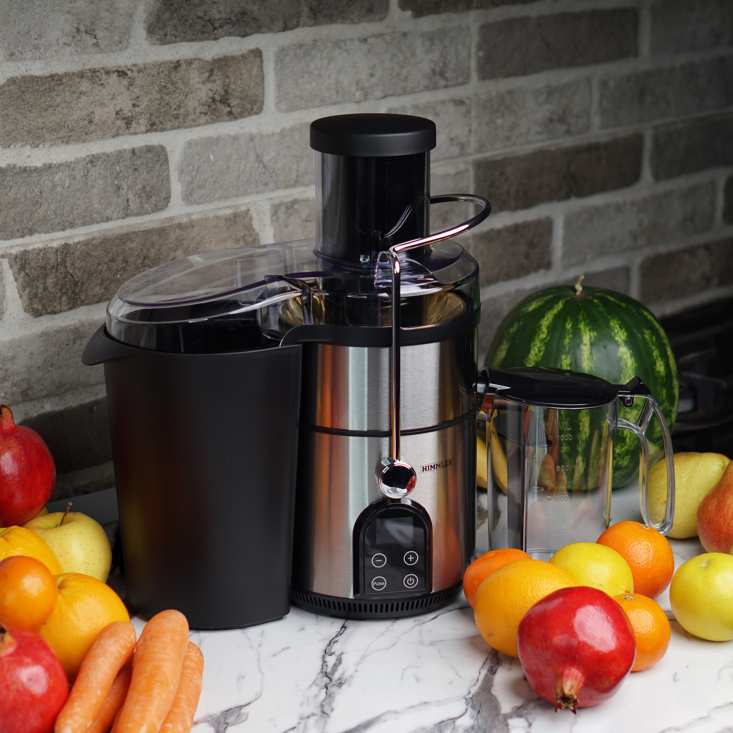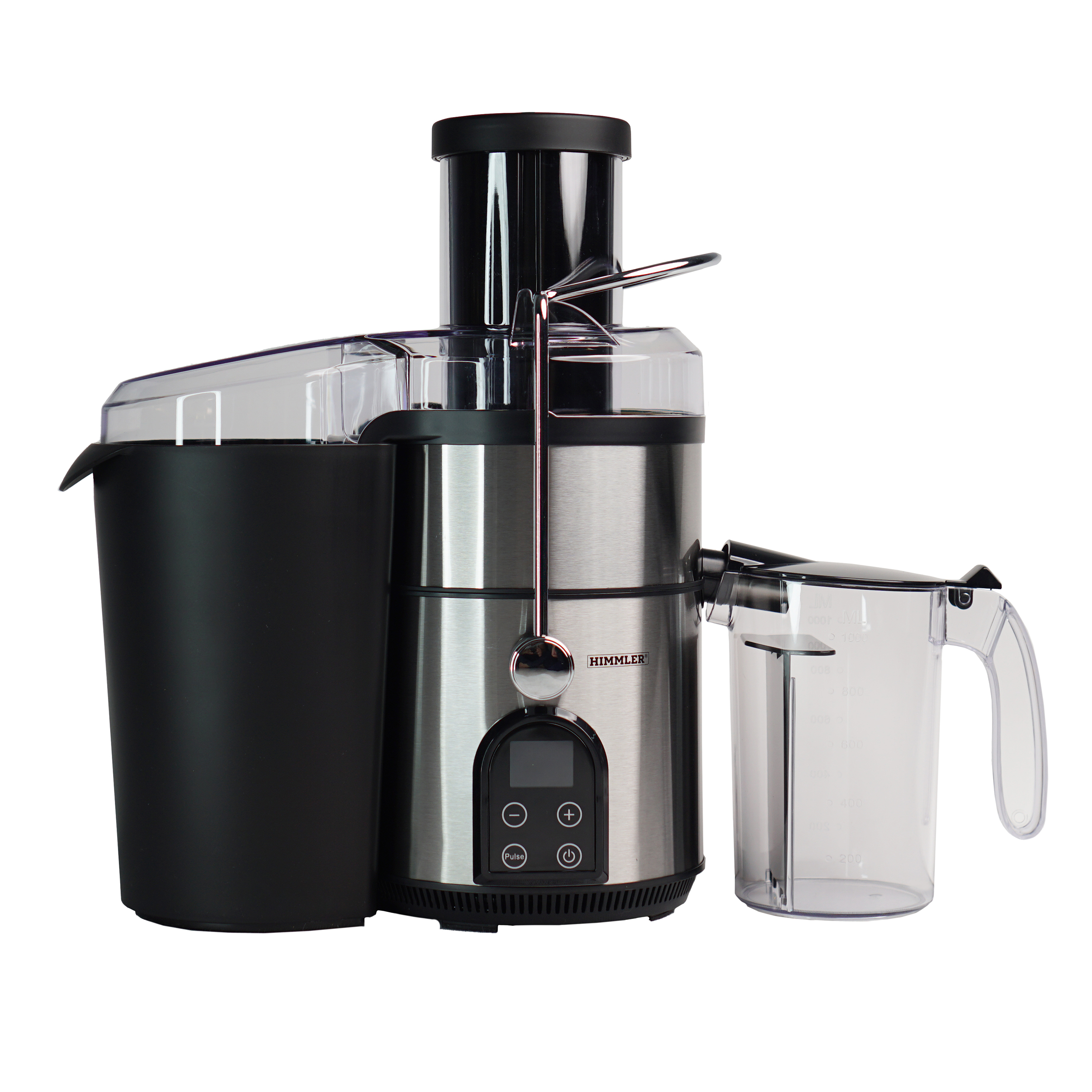 آبمیوهگیری هیملر مدل HJC-۴۲۵۰ از محصولات پرفروش و پرطرفدار این شرکت است که در کنار طراحی زیبا، کیفیت ساخت بالایی هم دارد. این آبمیوه گیری دارای دو مخزن آبمیوه و تفاله است که هر کدام به گونهای مجزا از دستگاه در کنار آن قرار گرفتهاند.قابلیت جدا شدن مخزنها علاوهبر نظافت آسانتر، ظرفیت بیشتری را هم در اختیار دارندگان آن قرار میدهد. لازم به ذکر است که تیغه اصلی این آبمیوه گیری از جنس تیتانیوم ضد زنگ بوده و دهانه آن هم از قطر مناسب ۸.۴ سانتی متری برخوردار است که بهراحتی میتواند یک میوه کامل مانند سیب را از خود عبور دهد و برای گرفتن آبمیوهها نیازی به خردکردن آنها به قطعات کوچکتر نیست. علاوه بر فیلتر دستگاه که به راحتی قابل شست و شو است، میتوان لوازم جانبی آن را هم در ماشین ظرفشویی قرار داد. برای این دستگاه اقلام همراهی نظیر برس تیغه، مخزن پلاستیکی آبمیوه که شفاف و دارای درجه بندی است و همچنین مخزن تفاله آبمیوه گیری در نظر گرفته شده که به راحتی میتوان آنها را پس از پر شدن از دستگاه جدا کرد و پس از وقفهای کوتاه آنها را خالی و برای ادامه فرآیند آبمیوه گیری روی دستگاه قرار داد. آبمیوهگیری هیملر مدل HJC-4250 دستگاهی چهار کاره است و میتوان توان آن را در پنج سرعت تنظیم کرد. پایههای ضد لغزش زیر این دستگاه مانع از لرزش و جابجایی آن حین کار میشود. لوله خروجی دستگاه و پارچ آبمیوه آن طوری طراحی شدهاند تا آبمیوه مستقیم وارد پارچ شده و چکهای ایجاد نشود.